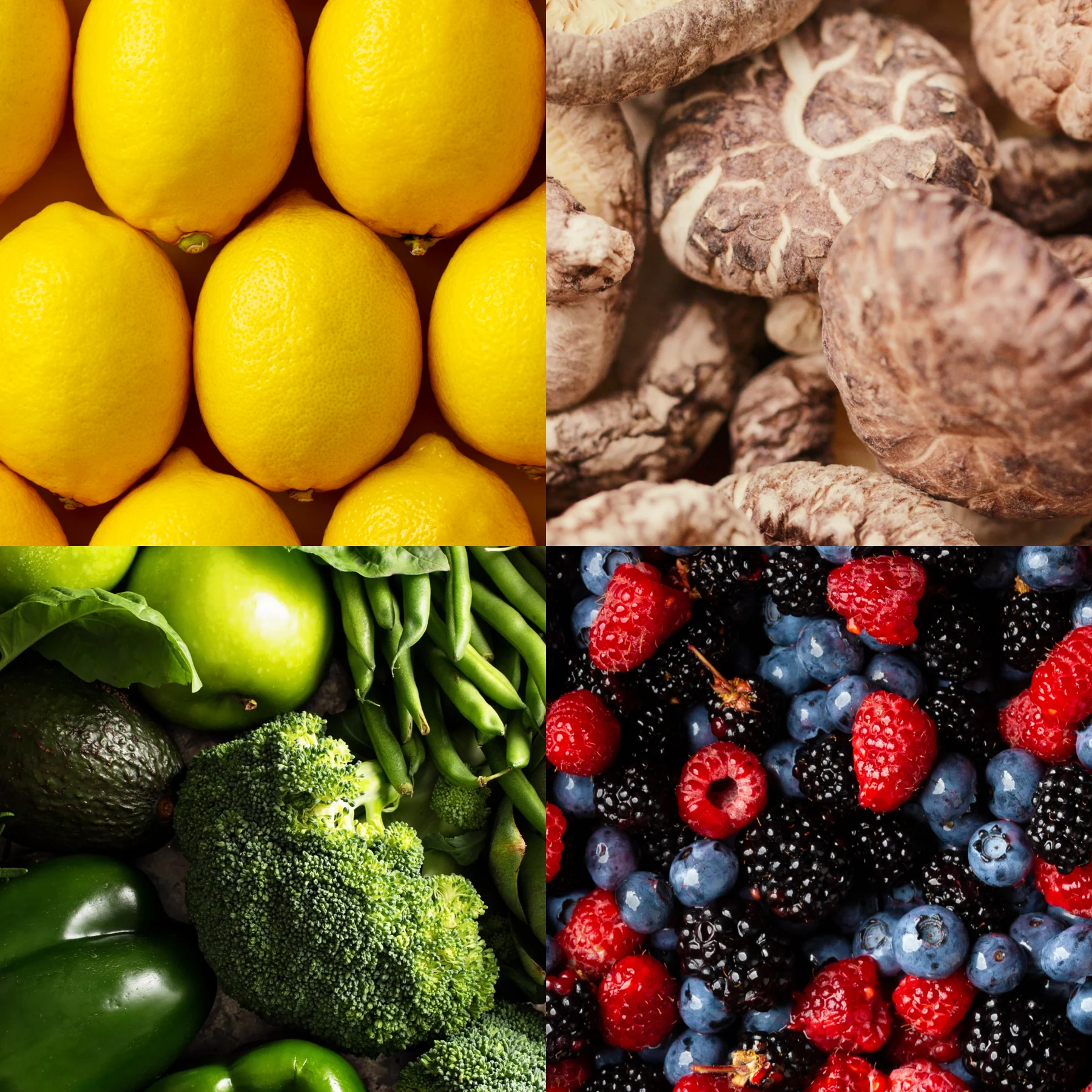 Whole veggies, fruits, vitamins, and super mushrooms fight inflammation, backed by 35,000 studies.