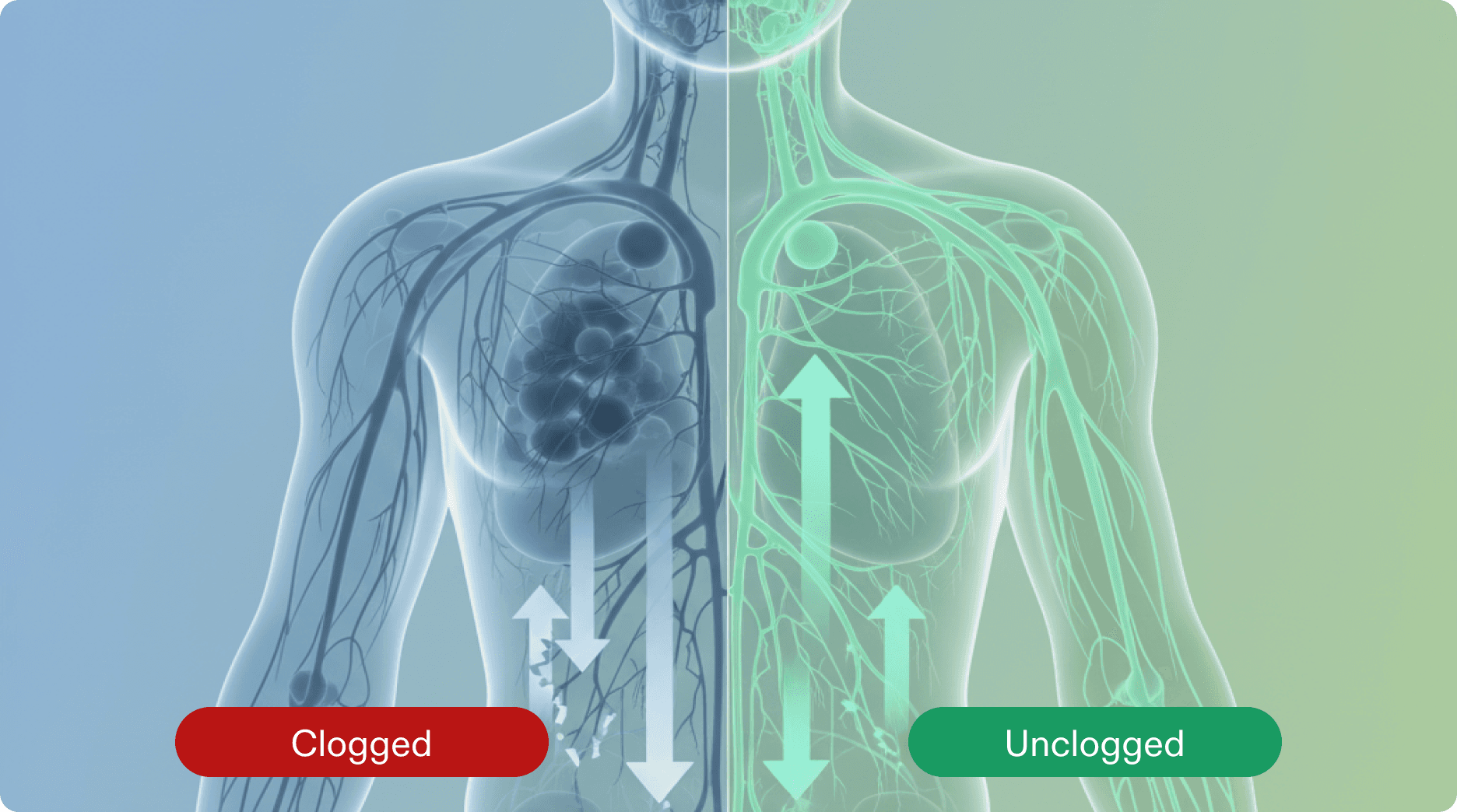 You feel stagnant lymph in your skin, your energy, and your daily comfort. See the difference between a body stuck in buildup and one finally able to flow.